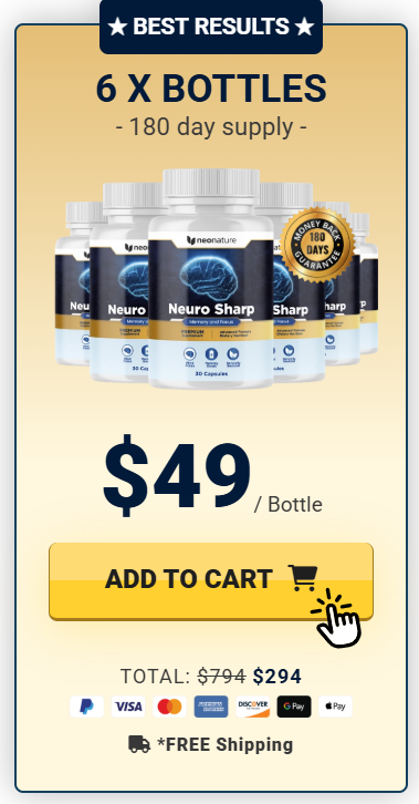 In addition to our 180-day money-back guarantee, the Official Neuro Sharp™ Website offers Free Shipping for premium customers who purchase the 6-bottle package.